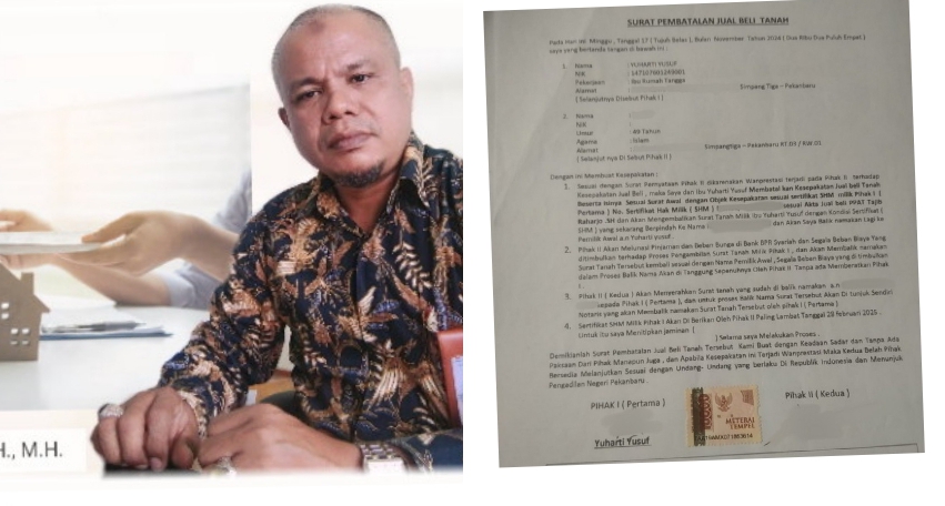 Yuharti pun menyerahkan SHM rumahnya. Namun oleh Bkl, SHM pun dibaliknamakan atas nama istrinya, KDS yang anak mantan Bupati ini, serta pernah menjabat anggota DPRD Kota Pekanbaru.