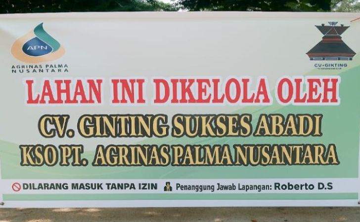“Secara tiba-tiba ada puluhan OTK masuk ke kebun. Tidak hanya masuk, tapi mereka juga memasang sebuah baliho bertuliskan: LAHAN INI DIKELOLA OLEH CV GINTING SUKSES ABADI KSO PT AGRINAS PALMA NUSANTARA. DILARANG MASUK. PENANGGUNG JAWAB LAPANGAN: ROBERTO D.S,” bunyi tulisan dalam, spanduk tersebut.
