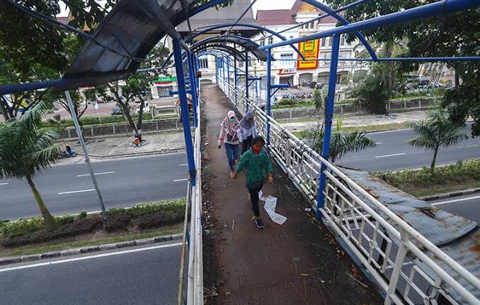 Waduh….. Pemko Belum Juga Benahi JPO di Jalan Sudirman Yang Rusak