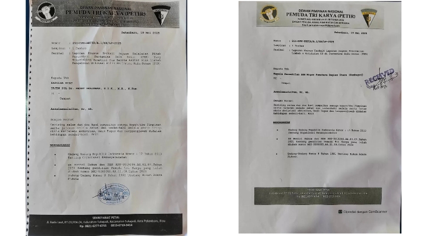 Laporan bernomor 210-DPN-PETIR/A.1/XX/LP-2025 itu ditandatangani oleh Ketua Umum Dewan Pimpinan Nasional (DPN) PETIR, Jack Sihombing, dan Sekretaris Umum Andhi Harianto.