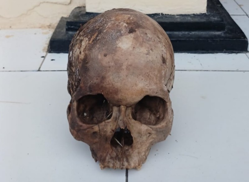 “Dari kejauhan, keduanya melihat benda yang menyerupai tengkorak manusia, tetapi mereka belum yakin karena jaraknya sekitar 8 meter,” ujarnya.