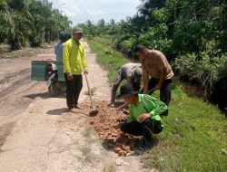 DERAKPOST.COM – Warga Desa Teluk Papal, Kecamatan Bantan, Kabupaten Bengkalis, secara swadaya memperbaiki jalan poros antar dusun yang rusak parah di Jalan Sersan Joni, Dusun Sidomulyo, Ahad (11/5/2025). Jalan tersebut merupa jalur penting yang menghubungkan antar dusun dan menjadi akses utama menuju SD, Polindes, serta Kantor Desa.
