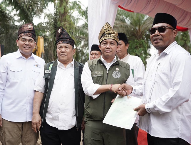 DERAKPOST.COM – Menteri Kehutanan RI Raja Juli Antoni telah menyerahkan Surat Keputusan Hutan Kemasyarakatan (SK HKm) kepada warga yang akan direlokasi. Artinya, pihak pemerintah menegaskan komitmennya dalam menata kawasan hutan konservasi secara berkeadilan dan berkelanjutan melalui program relokasi masyarakat terdampak.