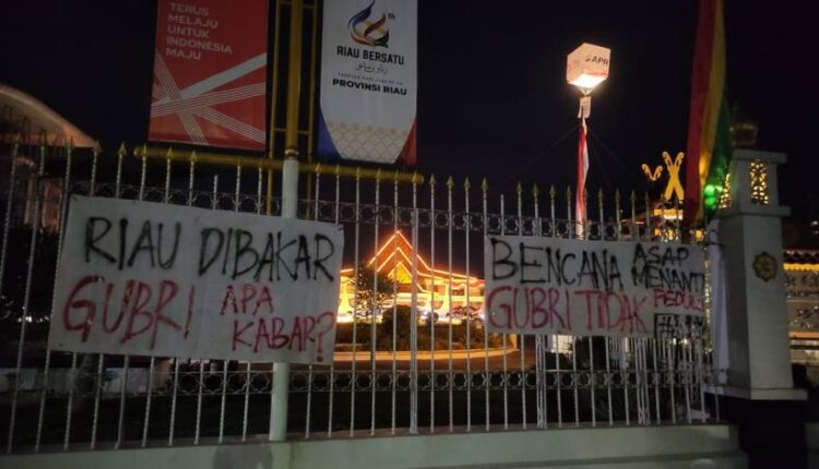 DERAKPOST.COM – Badan Eksekutif Mahasiswa Universitas Riau (BEM Unri) mengkritik kinerja Pemerintah Provinsi Riau dibawah kepemimpinan Gubernur Syamsuar. Hal itu, dengan memasang sejumlah spanduk di titik-titik strategis disekitaran pusat Kota Pekanbaru.