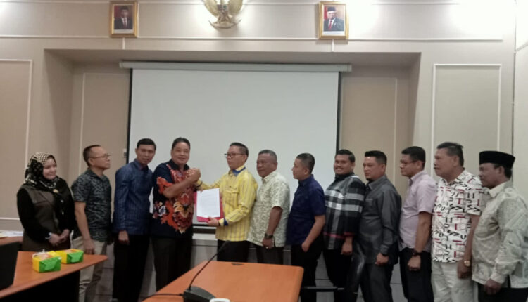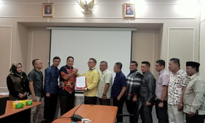 Dokumen mosi tidak percaya ke dua unsur pimpinan tersebut diserahkan langsung perwakilan anggota DPRD ini kepada Ketua BK Ferri Situmeang dan jajaran anggota di ruang rapat Badan Musyawarah (Banmus) Gedung DPRD Jalan Antara Bengkalis, Senin (28/8/23) siang.
