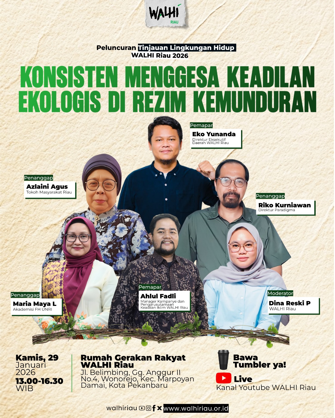 WALHI Riau mempersembahkan Tinjauan Lingkungan Hidup (TLH) 2025 dengan tajuk:  “Konsisten Menggesa Keadilan Ekologis di Rezim Kemunduran”