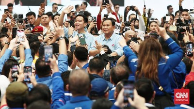 Mereka terlihat melambaikan tangan dan bersalaman dengan sejumlah massa pendukung Prabowo-Gibran yang sudah berkumpul.