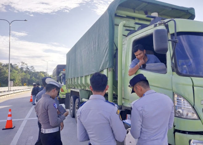 Wow….. Puluhan Truk Over Dimensi dan Over Load Terjaring Operasi Gabungan di Tol Pekbangpar