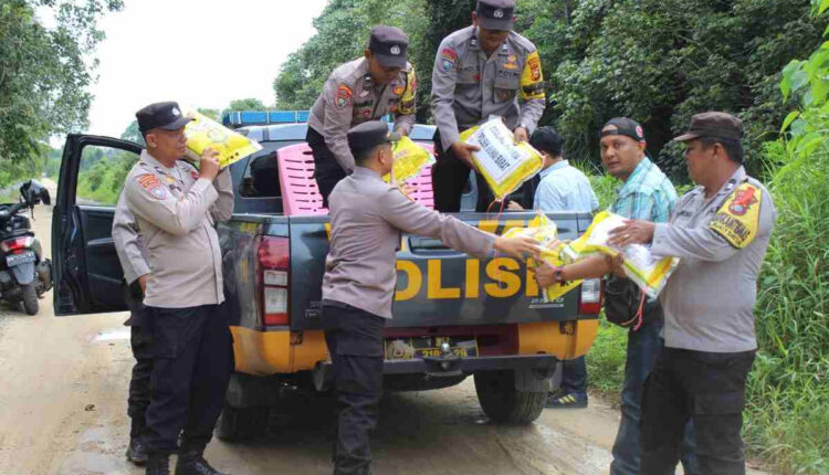 Wujudkan Pemilu Damai 2024, Kapolsek Dumai Barat Antarkan Sembako untuk Warga Lewati Medan Ekstrim