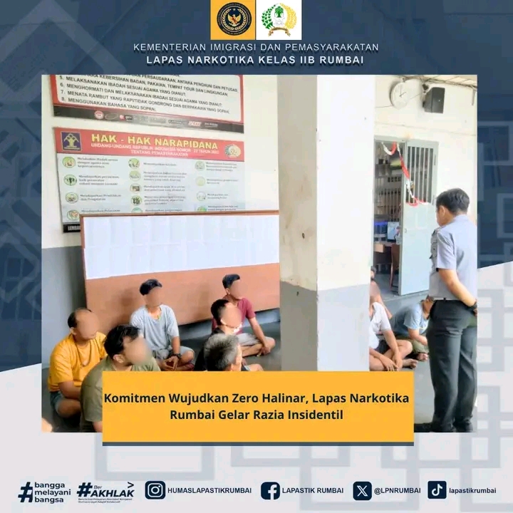 DERAKPOST.COM – Dalam rangka Deteksi Dini dalam menangani potensi Gangguan Keamanan dan Ketertiban serta komitmen dalam mewujudkan zero halinar Lembaga Pemasyarakatan (Lapas) Narkotika Kelas IIB Rumbai menggelar razia kamar hunian warga binaan, Rabu (3/9/2025).